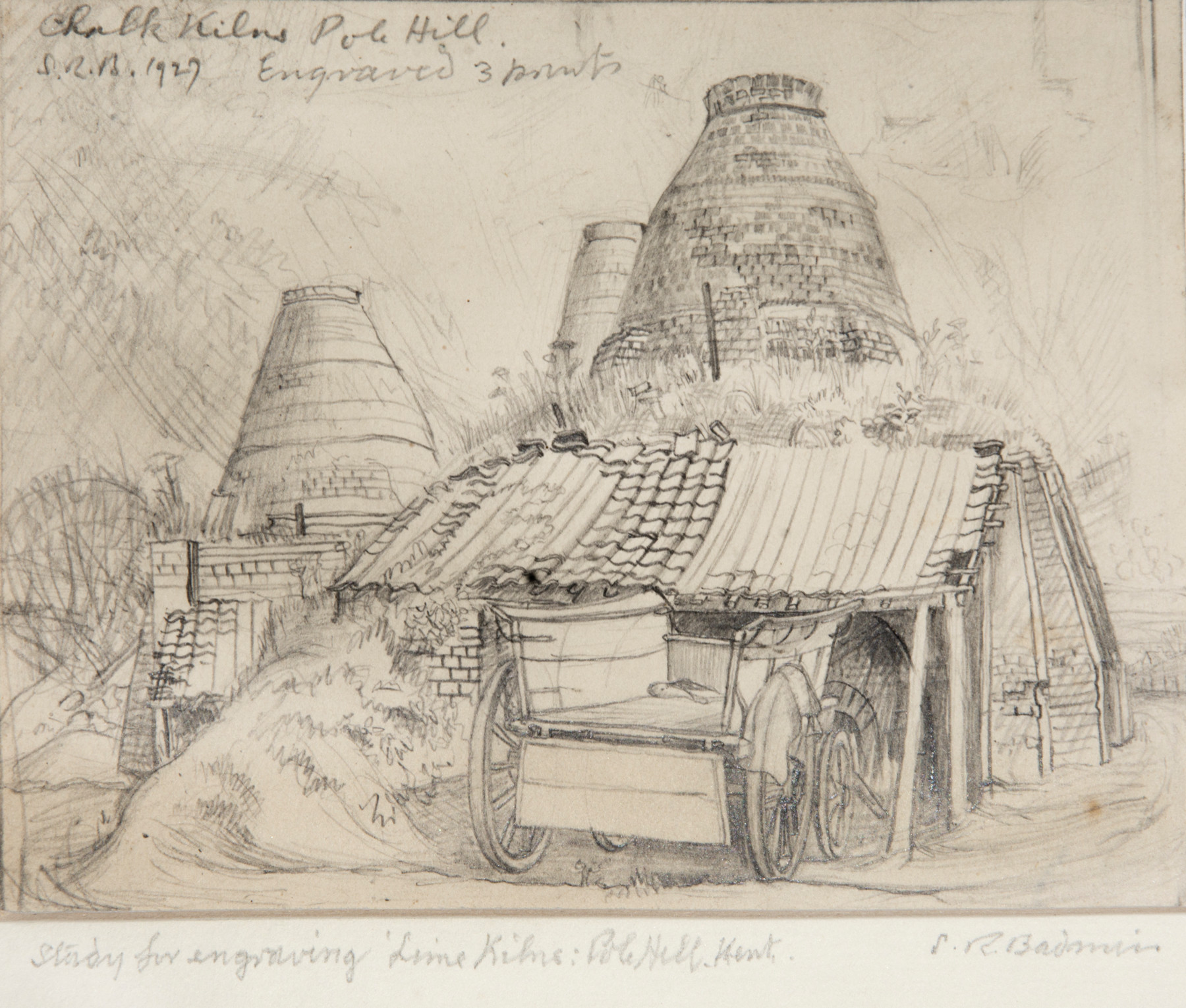 Signed with initials, inscribed 'Chalk Kilns Pole Hill. Engraved 3 prints' and dated 1929 Signed and inscribed 'Study for engraving "Lime Kilns, Pole Hill, Kent" on original mount