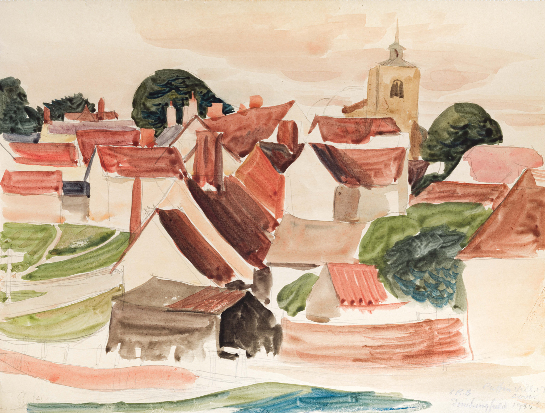 Preliminary Drawing For S R Badmin, Village and Town. A Puffin Picture Book, Harmondsworth: Penguin Books, 1939, front cover