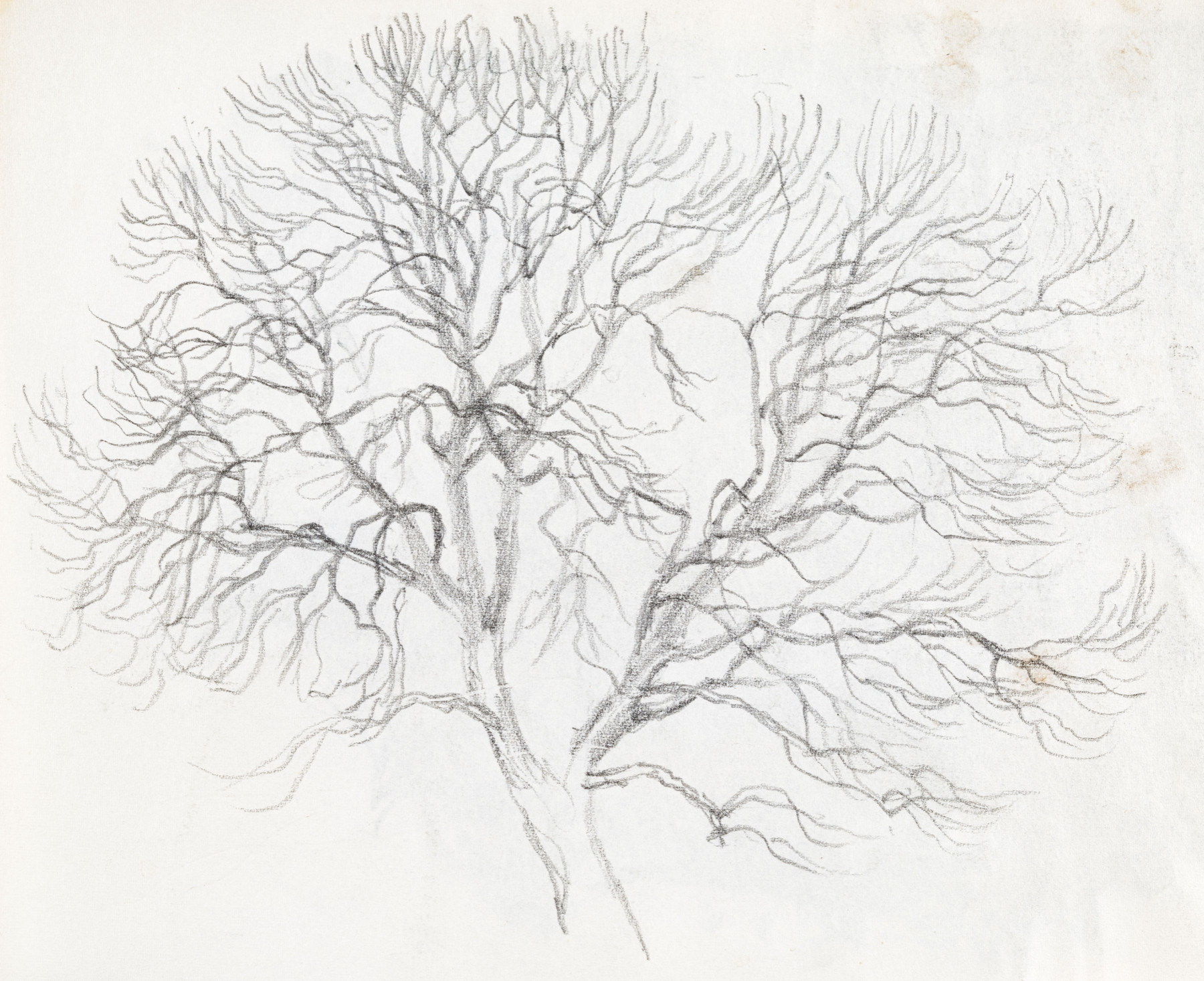 Pencil drawing of a tree in winter on reverse
